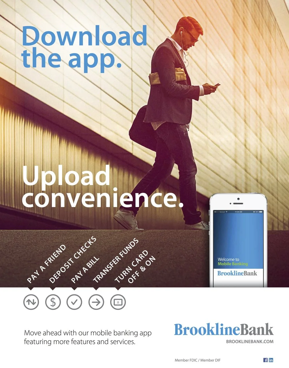 A mobile man and a mighty, mini, mobile brochure for Brookline Bank. Tuesday 05.16.17 Posted by peter jacobs